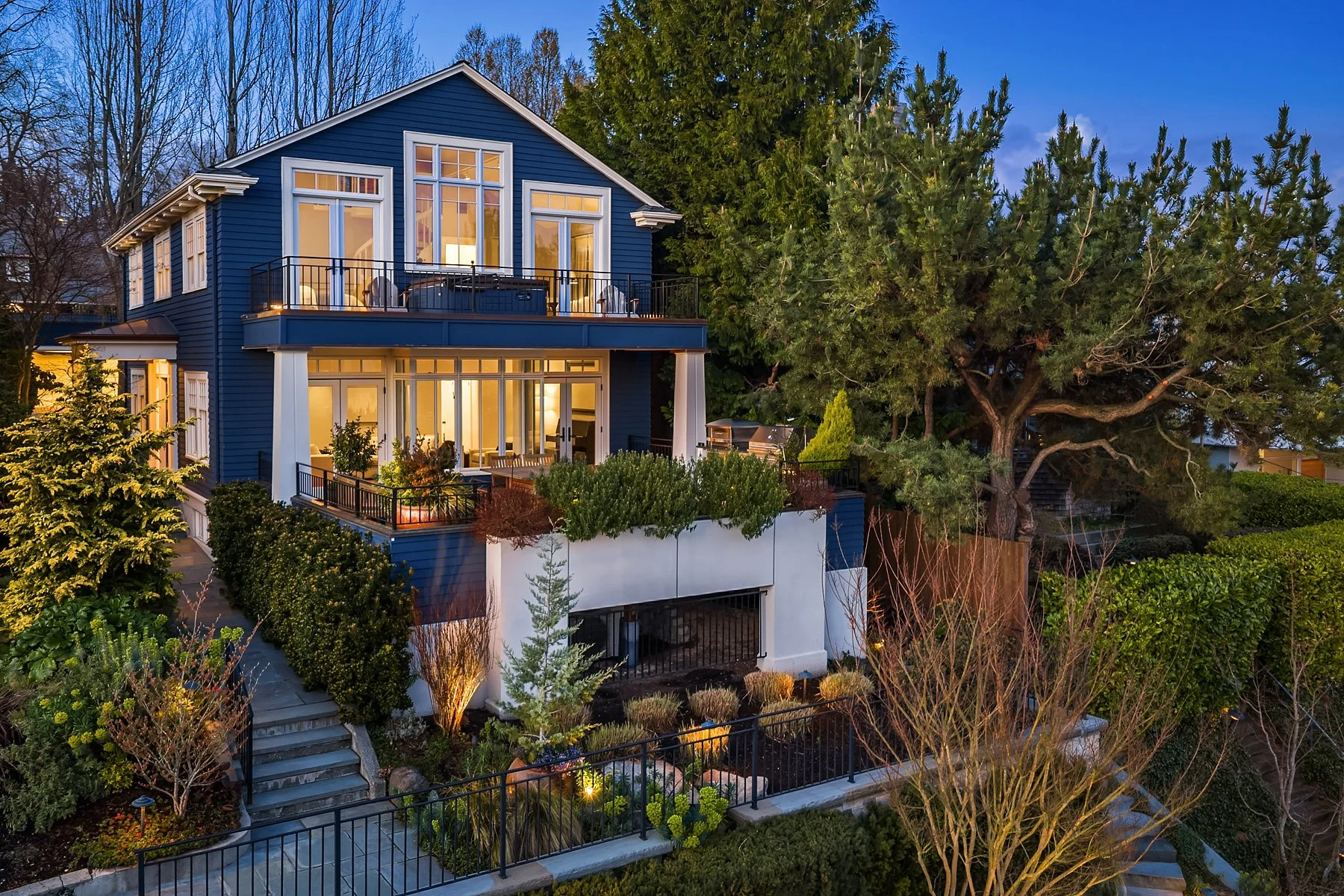 Perched atop coveted Queen Anne hill, this extensively reimagined residence offers an exceptional blend of privacy, architectural distinction, and sweeping city views. Situated along a private shared drive serving just four homes, this home enjoys private direct access to Bhy Kracke Park, creating a rare escape in the heart of Seattle. Offered concurrently with neighboring 360 Highland Drive, this presents a unique opportunity to create a private residential compound defined by scale, flexibility, and iconic views. Thoughtfully renovated under the direction of architect Laurie Carron, the three-bedroom, 3.25 bath home pairs refined design with highly functional living. Expansive windows frame dramatic city vistas and fill the interiors with natural light. The main level is designed for both entertaining and daily living, featuring a chef’s kitchen with Sub-Zero refrigerator and Viking range, formal dining, and a living room with a hidden tv that opens to an amazing entertainer’s deck with built-in pizza oven, grill and panoramic city and Lake Union views. Upstairs, the primary suite offers a private retreat with walk-in closet, spa-like bath with radiant-heat floors, a private deck with hot tub and home office loft. Two additional bedrooms, laundry, and a full bath complete the level. The lower level provides added flexibility with a rec room, full bath, gym or hobby space, and expanded laundry center. Outdoor spaces include landscaped grounds and a two-car garage with EV charging, storage, workspace, and additional off-street parking. Ideally located near downtown, South Lake Union, and Seattle Center, with access to top-rated schools and iconic holiday fireworks views.